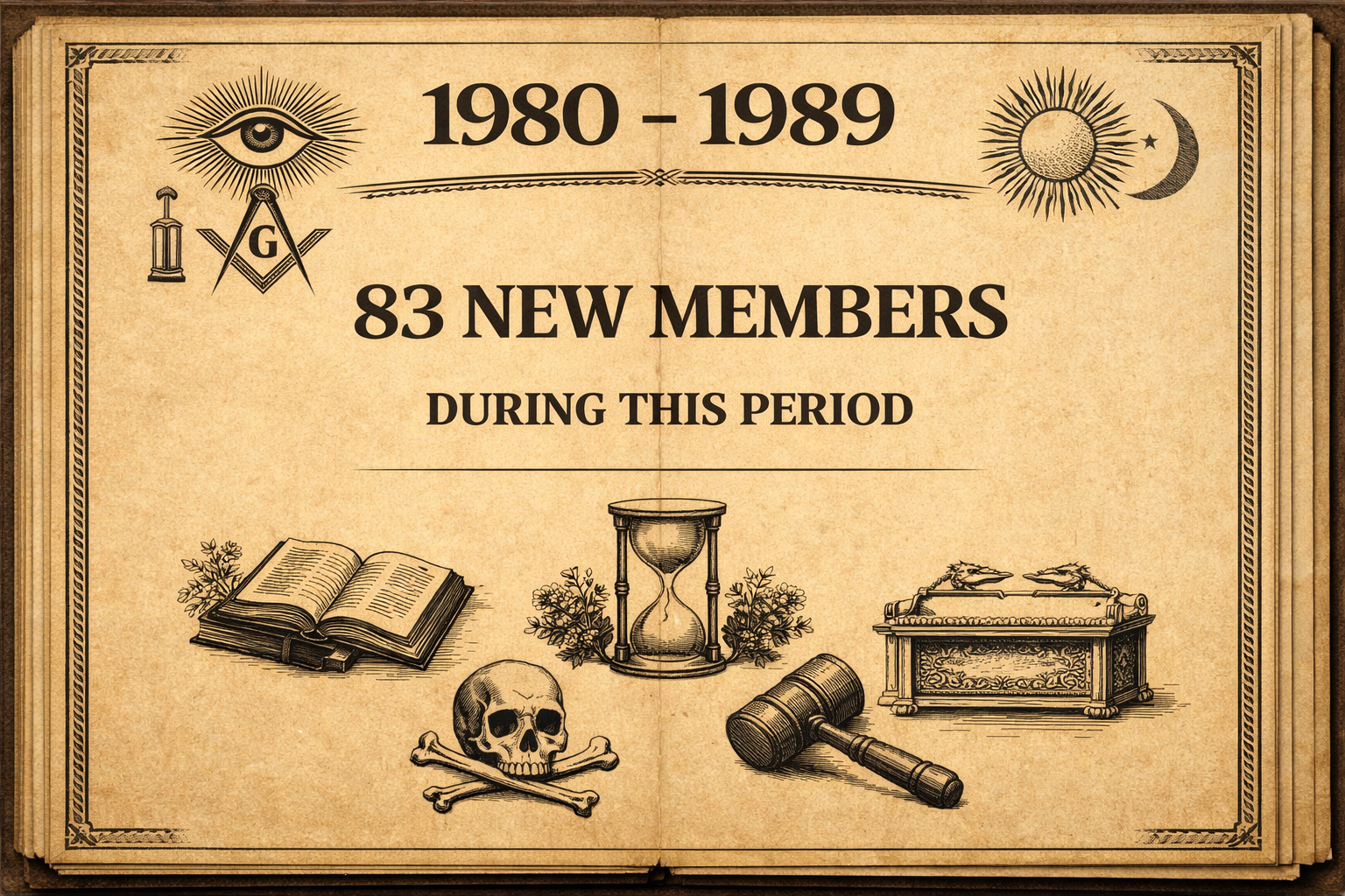 The following list records the eighty-three Brethren who joined Lodge St Olaf during the decade of the 1980s, comprising seventy-five initiates and eight affiliates. This period represented one of significant growth for the Lodge, with a strong number of new members entering the Craft and several experienced Brethren affiliating from other lodges.