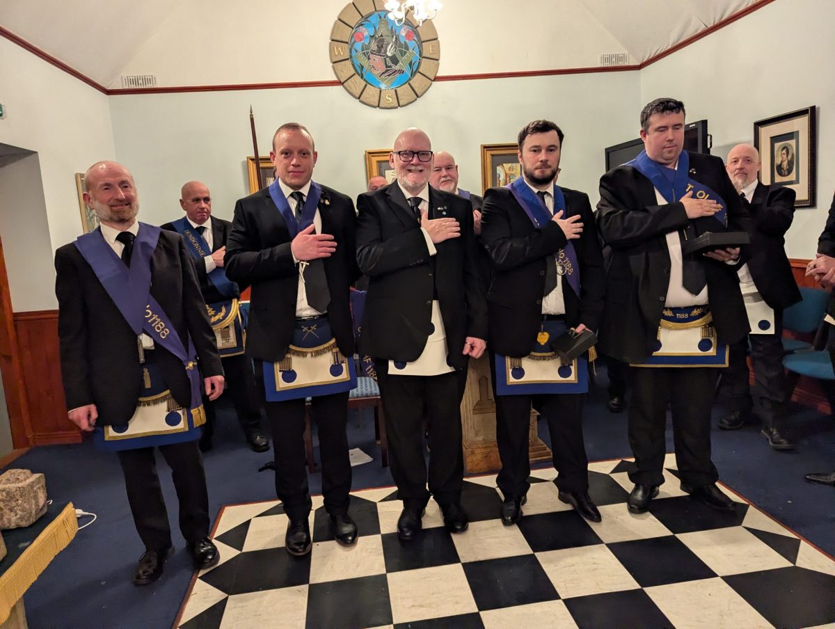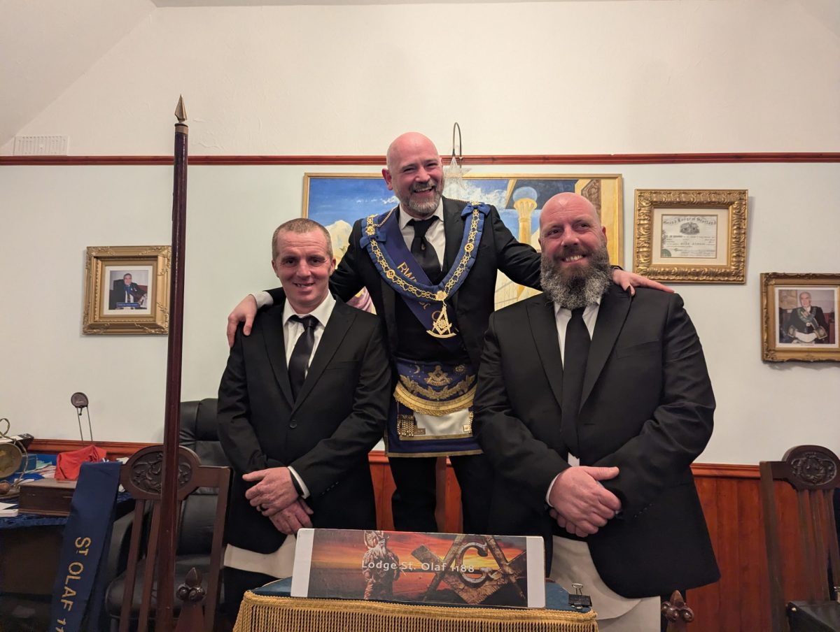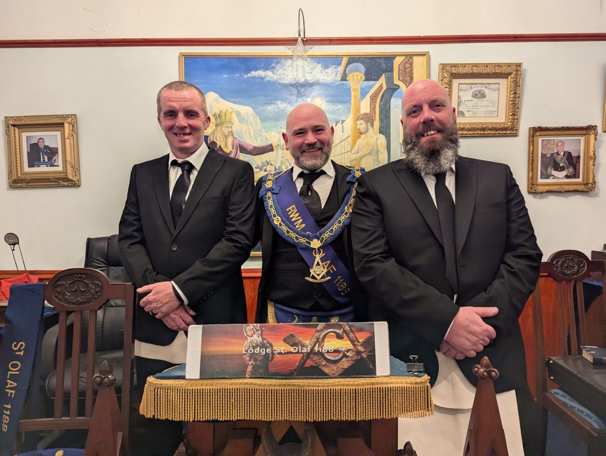 The Lodge was filled to its very bounds, the North and West walls lined with the faithful—Brethren of St. Olaf standing shoulder to shoulder in quiet unity. Yet they did not stand alone. From neighbouring Lodges came honoured guests: Brethren of Lodge Keith No. 56 and Lodge Dundonnie No. 1087, who were received not as strangers, but as long-known companions upon the same path.